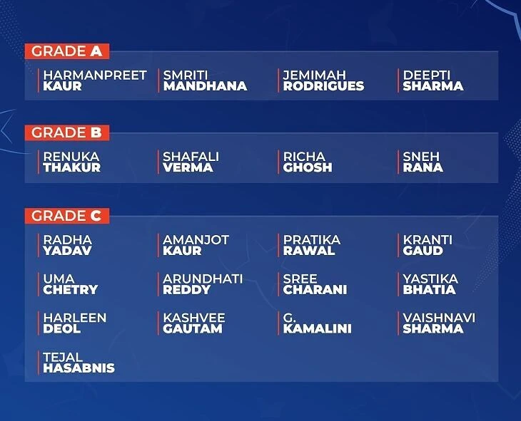 ** Women's cricketers' grades can be seen in the image above.