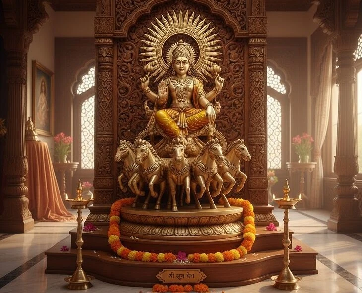 Many homes have idols of gods. However, scholars say that one should not keep a statue of the Sun God. This is because the sun appears to us as a visible deity every day. It is considered auspicious to greet the sun and offer water (Arghyam) during sunrise. When there is an opportunity to witness the divine in nature itself, worshipping the sun directly yields more powerful results than worshipping an idol.