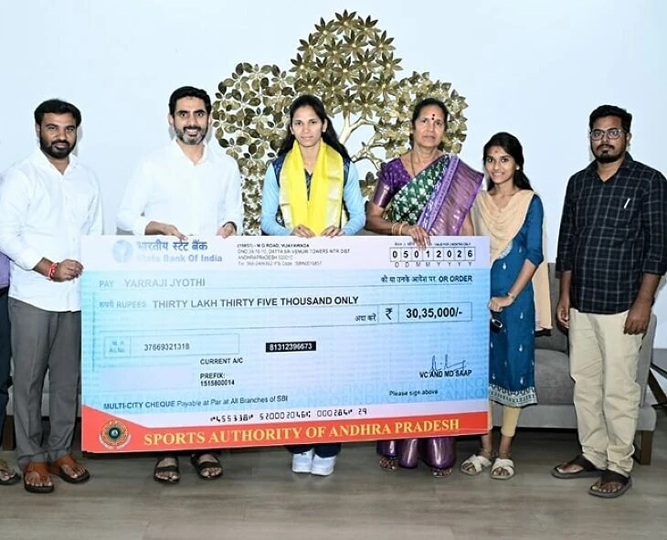 Andhra Pradesh: Minister Nara Lokesh tweeted that he was happy to meet Jyothi Yarraji, the gold medalist in the 100m hurdles at the Asian Athletics Championships. He congratulated her on this occasion. He said that her courage and determination will be an inspiration to the country. He revealed that he has provided her with ₹30.35 lakh in assistance for her preparation for the Asian and Commonwealth Games. He added that they will stand by her in realizing her Olympic dream.